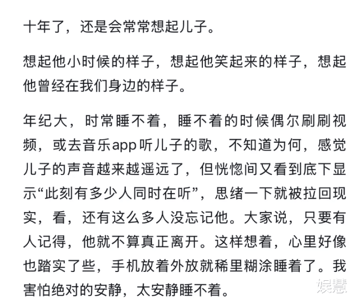 文中谈到了乔任梁从小到大是那么懂事,谈到了他出谈后的一些经验,谈到了老两口失去女儿后的晚年生计,字里行间流浮现对女儿的念念念和恻然。