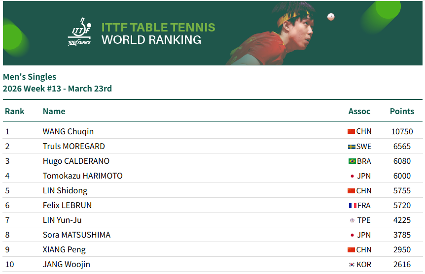 3月23日,英雄联盟投注海外乒联公布2026年第13周宇宙排行,时时彩app下载林诗栋位列第五名。