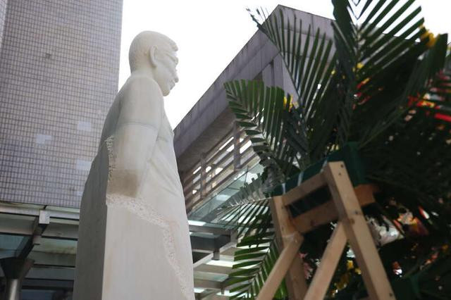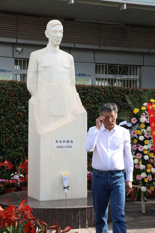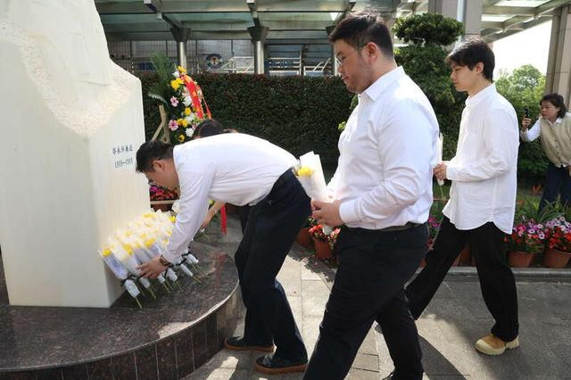 4月23日,四川绵阳,时时彩在“两弹一星功勋奖章”赢得者郭永怀生辰117周年之际,中国工程物理斟酌院举行缅念念作为。图为郭永怀、李佩的侄子李跃向郭永怀雕像献花。中青报·中青网记者王鑫昕/摄