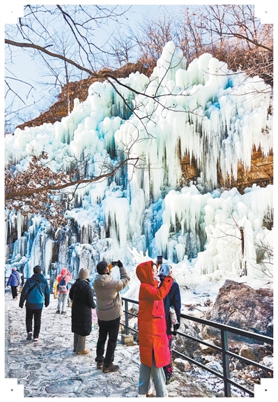 北京市平谷区鱼子山村的冰瀑诱骗搭客打卡。马深谷摄