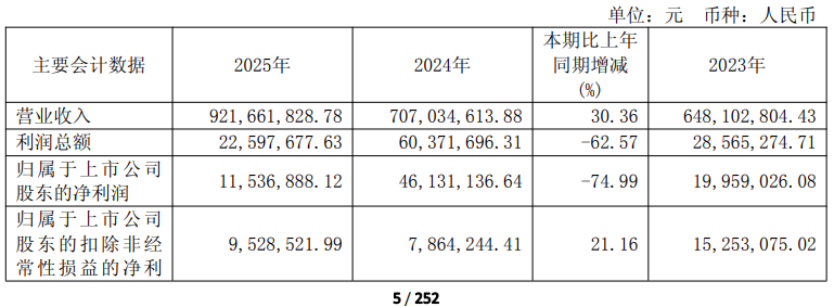 德宏股份(603701)4月12日晚表现2025年年度诠释,诠释期内,公司已毕营业收入9.22亿元,同比增长30.36%;包摄于上市公司股东的净利润1153.69万元,同比减少74.99%;基本每股收益0.04元。公司拟10派0.40元(含税)。