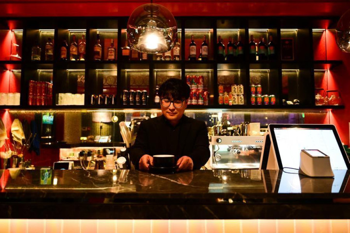 三克映画餐厅主办东说念主汪静程为来宾调制饮品。新华社记者周牧摄