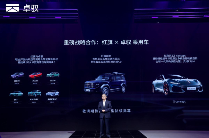 本次发布会上,卓驭晓喻与中国一汽达成深度策略配合。乘用车领域,红旗与卓驭集合开发的红旗司南组合驾驶接济已在红旗HS6、天工05、天工06等车型实现量产,高悟性端到端4.0模子将在本年上半年通过OTA升级上线,下半年上市的红旗越野将搭载卓驭高性能激光雷达。本次车展亮相的红旗天工S意见车选定基于卓驭原生多模态基础模子的全新一代架构,搭载L3/L4智驾措置决议。