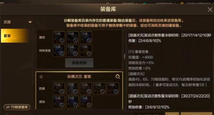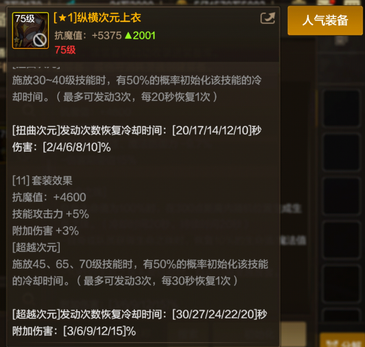而这套纵横次元套相似是有11件套的,这套亦然被大众称之为至尊镇魂套。不错看到这11件套装后果就能让大众在开释45/65和70级时期的时分有一半概率重置冷却,固然最多只可发动3次,但气运好的话秒放四次觉悟亦然很容易办到的。